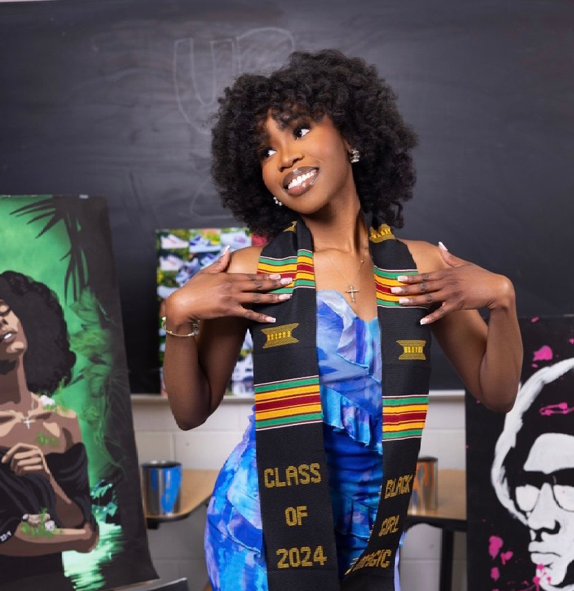 My name is Shontel Dove and I am a multi-disciplinary artist, muralist, and instructor from Florida. In Spring 2024, I graduated with a Bachelor of Science in Business Administration Marketing. Since then, I've applied that knowledge to establish Dove Studios where I offer faith-based art, live painting performances, workshops, and other creative branding services.